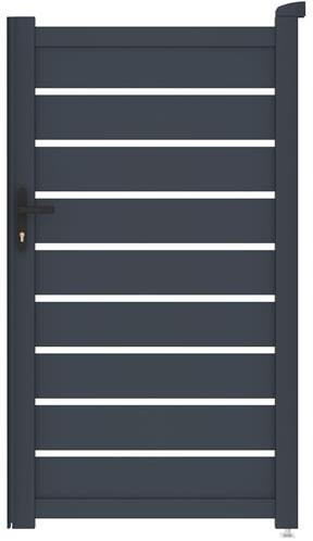 A vonzó grafit kivitelű, vízszintesen elhelyezett lécekkel való kitöltés ötvözi a kellő magánéletet a modern dizájnnal, így a kapu bármilyen típusú bekerített épülethez illik.