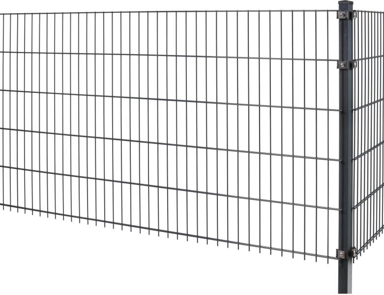 A porszórt acélból készült kétrudas, hálós kerítéspanel ott kerül felhasználásra, ahol telkeket kell elhatárolni vagy felületeket kell bekeríteni. A csomag oszlopokat és rögzítőanyagot nem tartalmaz.